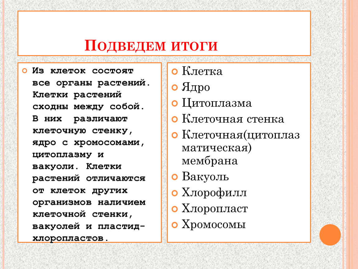 Из клеток состоят все органы растений. Клетки растений сходны между собой. В них различают клеточную стенку, ядро с хромосомами, цитоплазму и вакуоли. Клетки растений отличаются от клеток других организмов наличием клеточной стенки, вакуолей и пластид- хлоропластов.