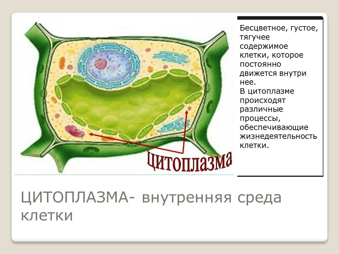 Бесцветное, густое, тягучее содержимое клетки, которое постоянно движется внутри нее.