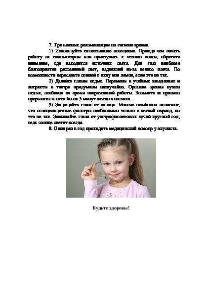 6. Регулярно проводить гимнастику для глаз.7. Три важных рекомендации по гигиене зрения.