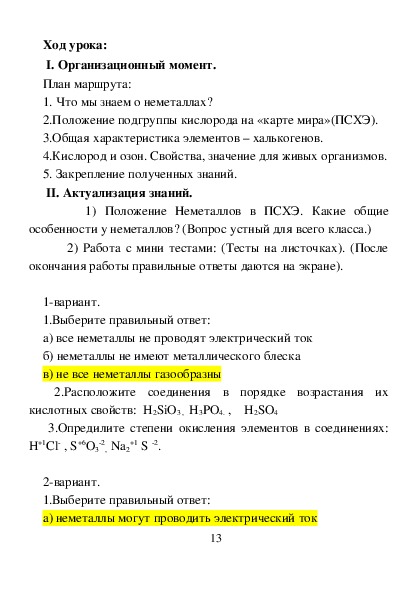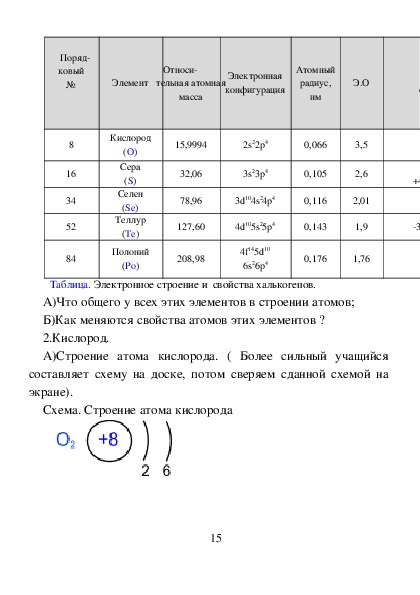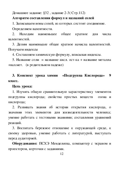 3. План конспект урока «Подгруппа кислорода». 9 класс 12
