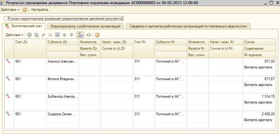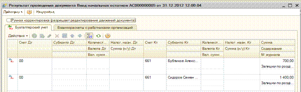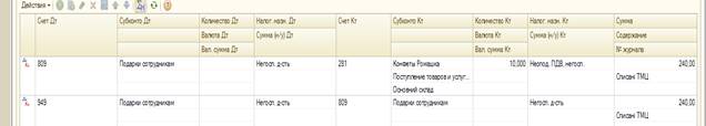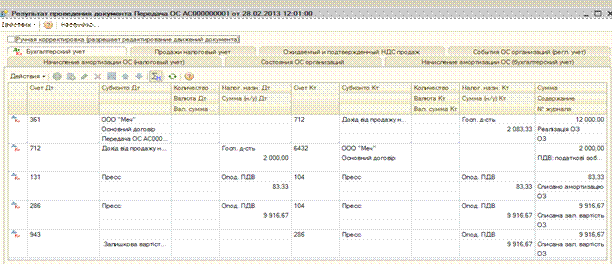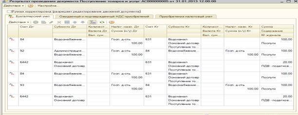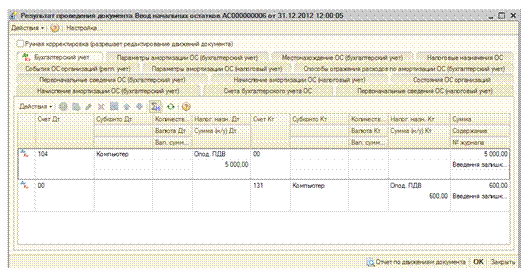 Обратить внимание на суммы Бу и НУ в проводках документа: