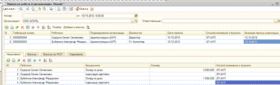 о Подразделение – АУП, Материально-ответственный – Сидоров С.С.;