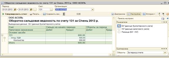 Начислить амортизацию в БУ и НУ за январь 2013.