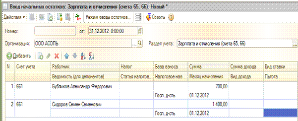 Рекомендации: Настроить режим работы - "Обязательства возникшие за период", период – январь ; проводить документы - V, печатать реестр - V, нажать кнопку "Заполнить".