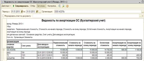 • Ведомость по амортизации ОС за период (бухгалтерский учет);