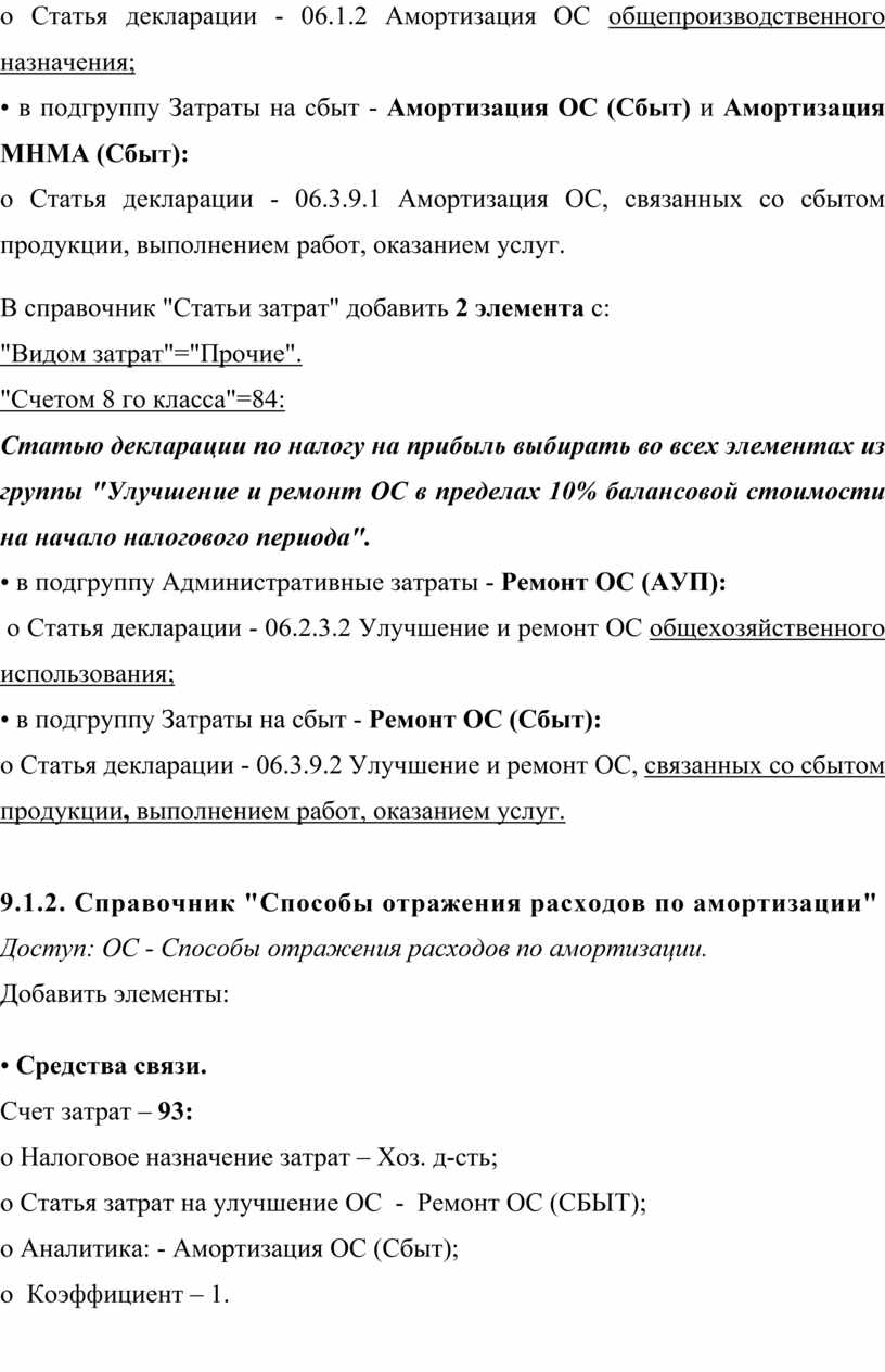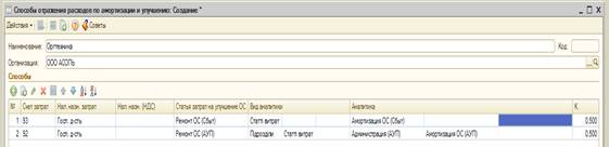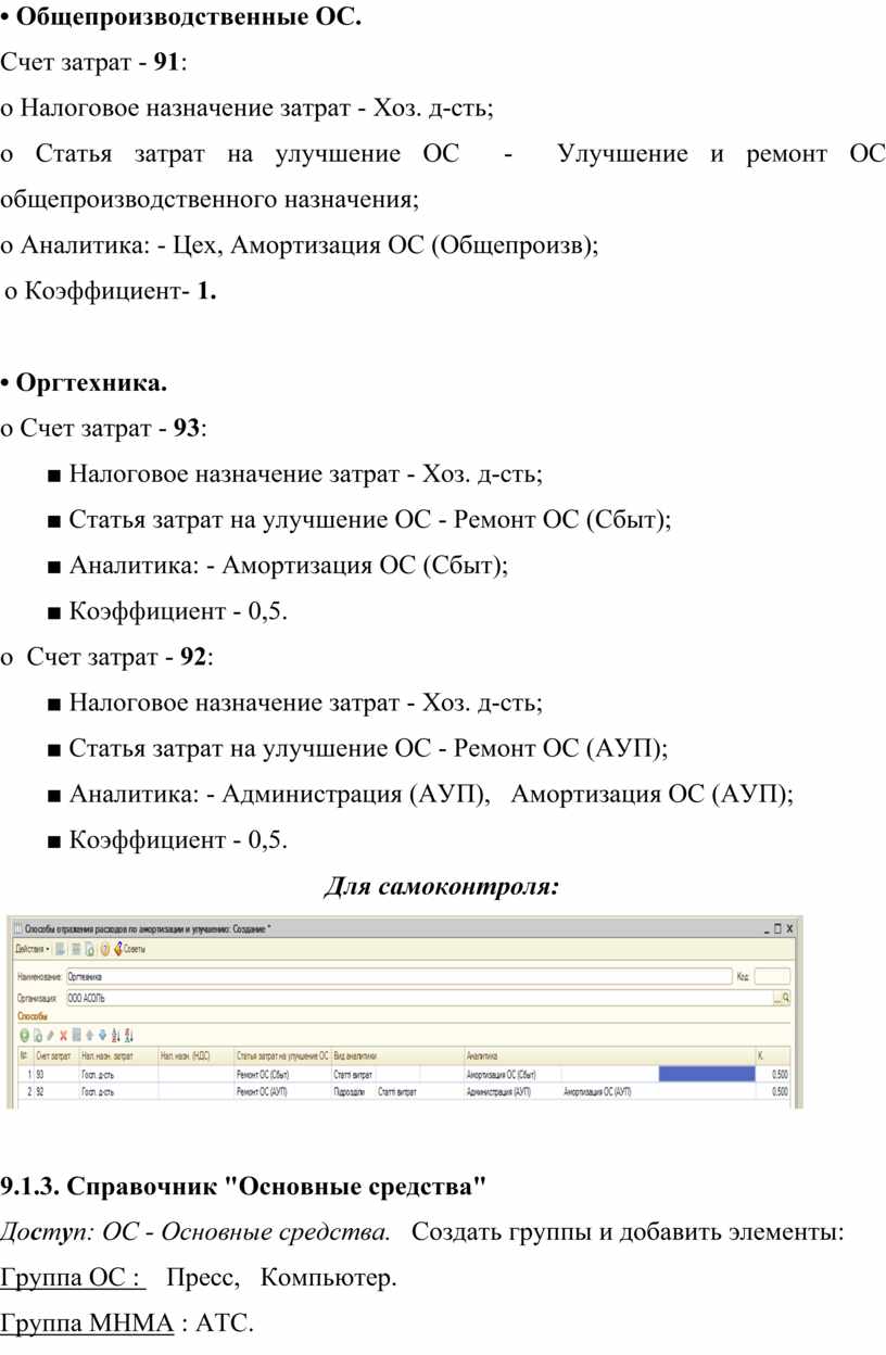 • Способ отражения расх. по амортиз. – Общепроизводственные ОС;