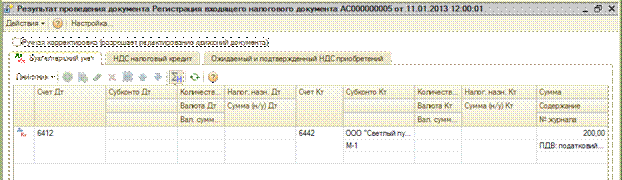 Вариант 1: Налоговый учет - Регистрация входящего налогового документа.