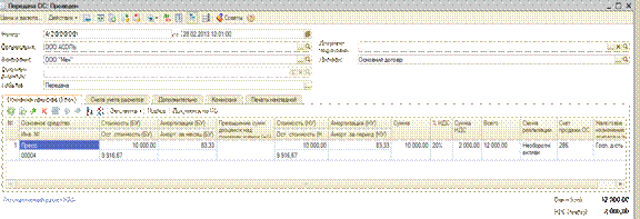 Рекомендация: после указания основного средства выполнить автозаполнение табличной части (кнопка «Заполнить – Для списка ОС»):