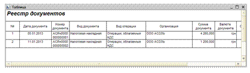 Доступ: Отчеты - Реглиментированная отчетность - Регламентированные отчеты (встроенные) - Первичные налоговые документы - Реестр налоговых накладных. Установить период – январь, нажать кнопку "Заполнить".