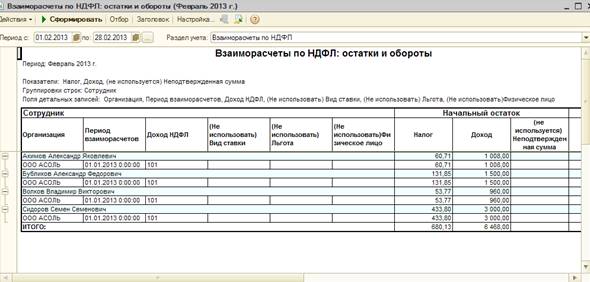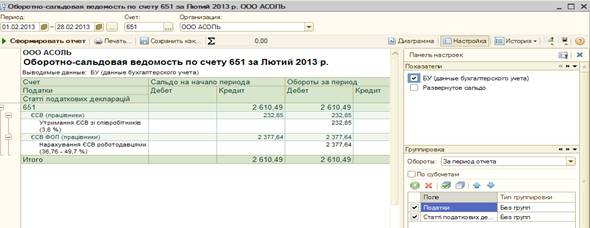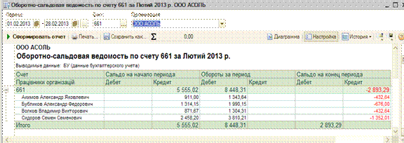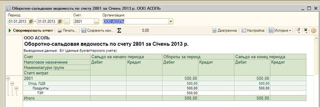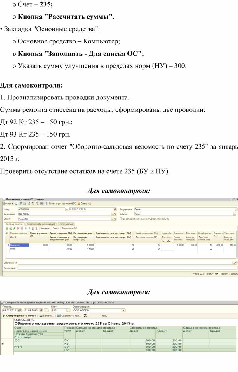 2. Сформирован отчет "Оборотно-сальдовая ведомость по счету 235" за январь 2013 г.