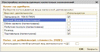 Доступ: Налоговый учет - Налоговые назначения активов и затрат.