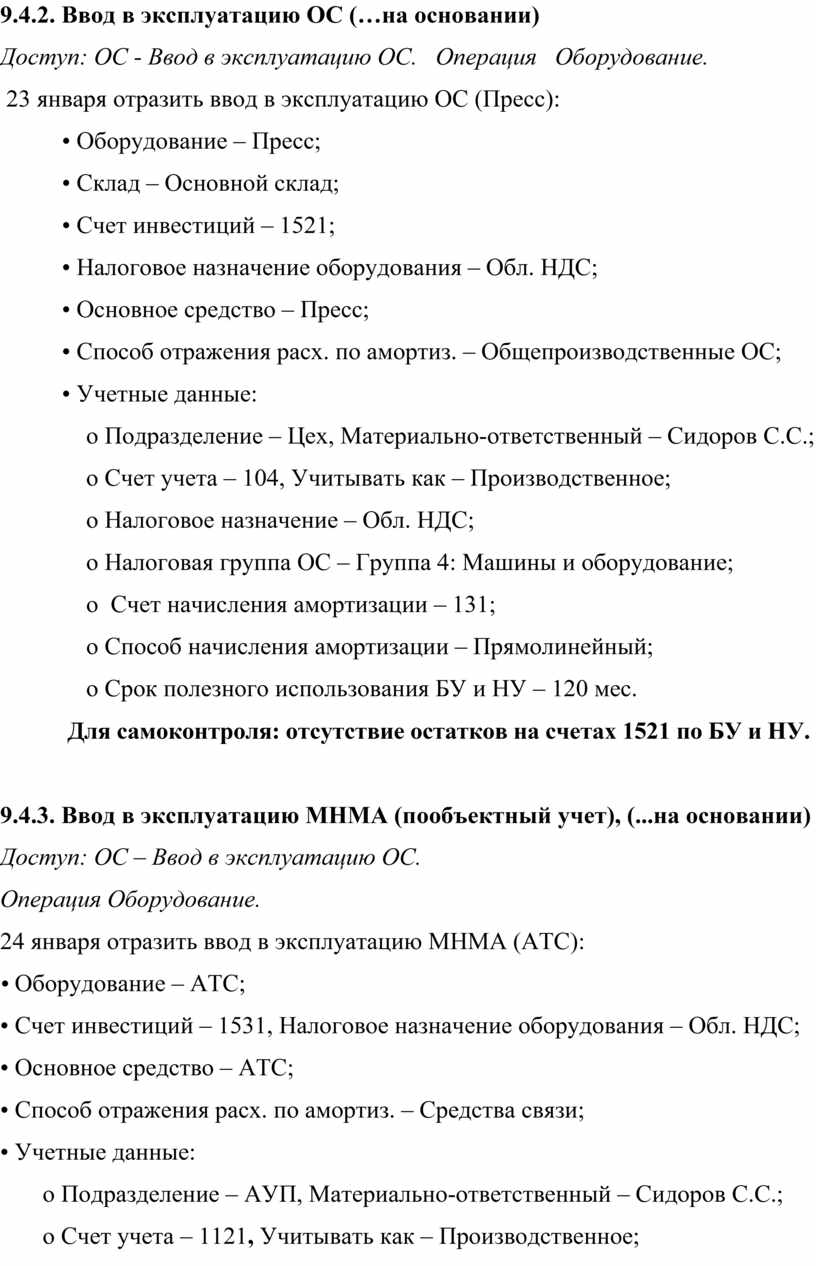 9.4.3. Ввод в эксплуатацию МНМА (пообъектный учет), (...на основании)