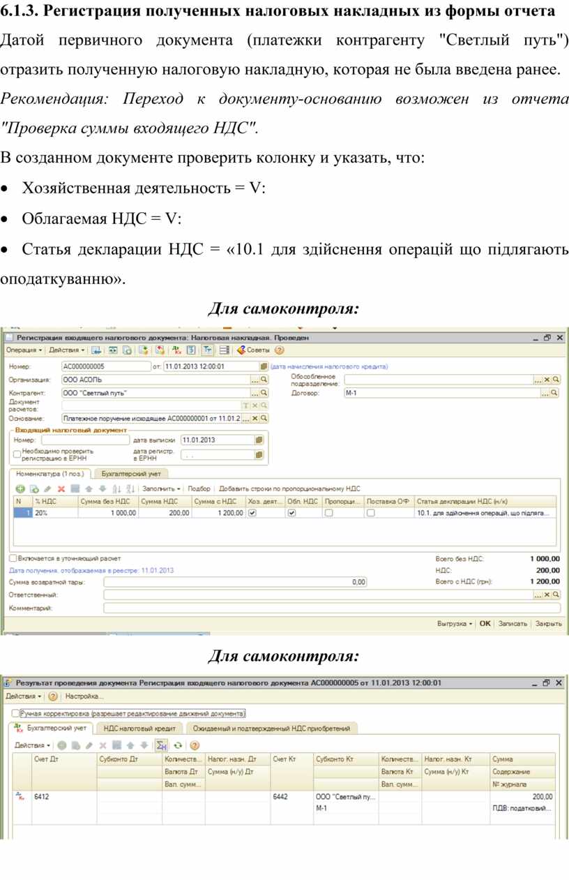 6.1.3. Регистрация полученных налоговых накладных из формы отчета