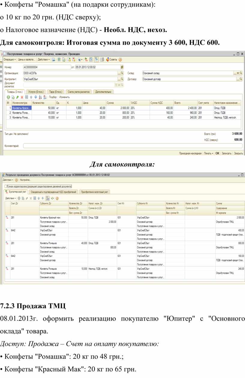 Для самоконтроля: сумма по документу – 360 (НДС – 60).