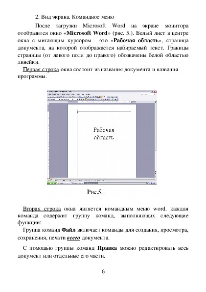 отобразится окно «Microsoft Word» (рис. 5.). Белый лист в центре