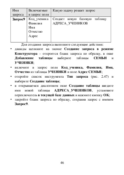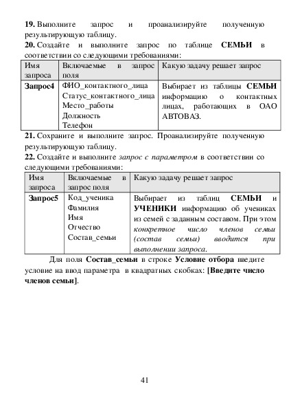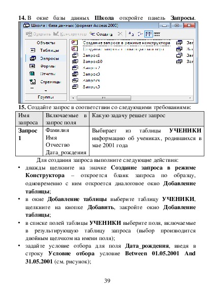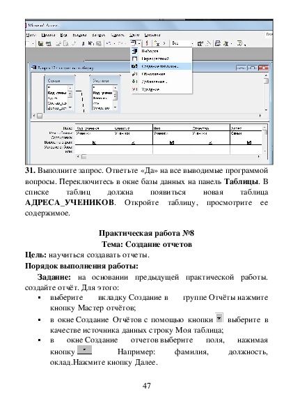 данных в таблицы, создать запросы и отчеты.