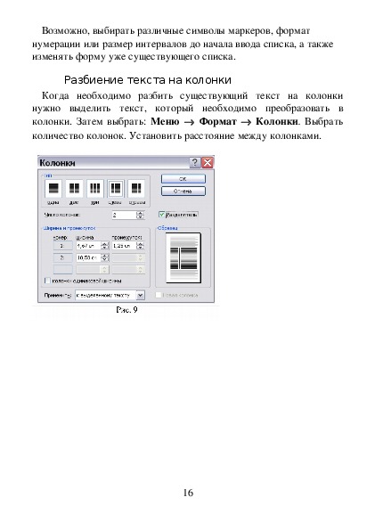 документ текст документа разбит на колонки, пронумерован или