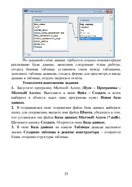 7. Аналогично пунктам 3 – 6 создайте таблицу УЧЕНИКИ, в