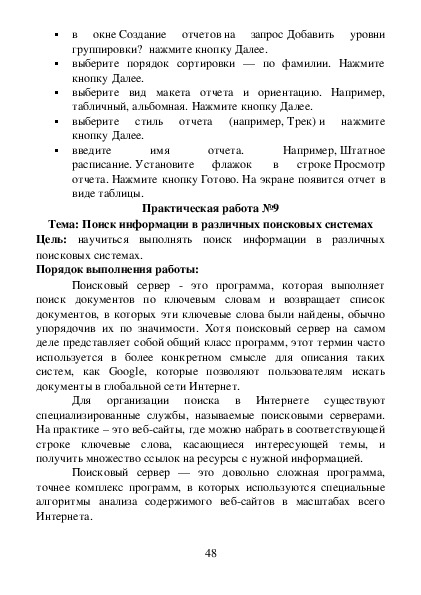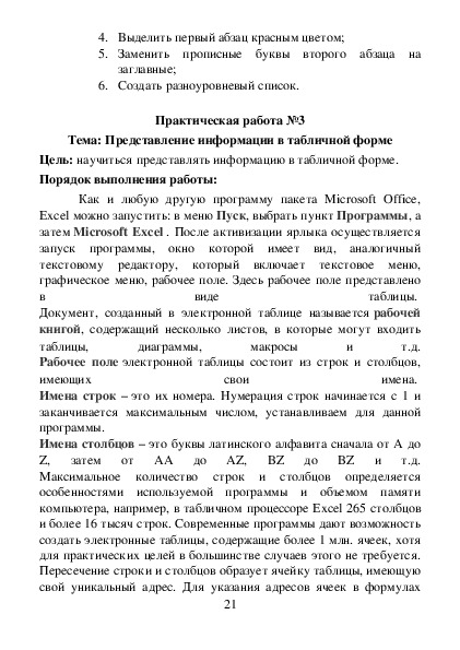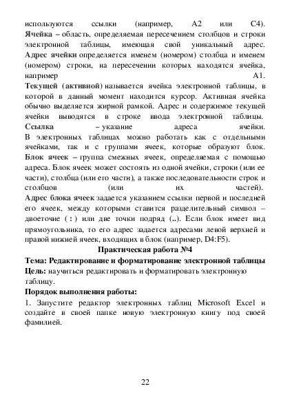 Данные материалы предназначены для студентов специальности 08.02.07 Монтаж и эксплуатация внутренних сантехнических устройств, кондиционирования воздуха и вентиляции и содержат темы практических работ и требования к их выполнению по дисциплине «Информатика».
