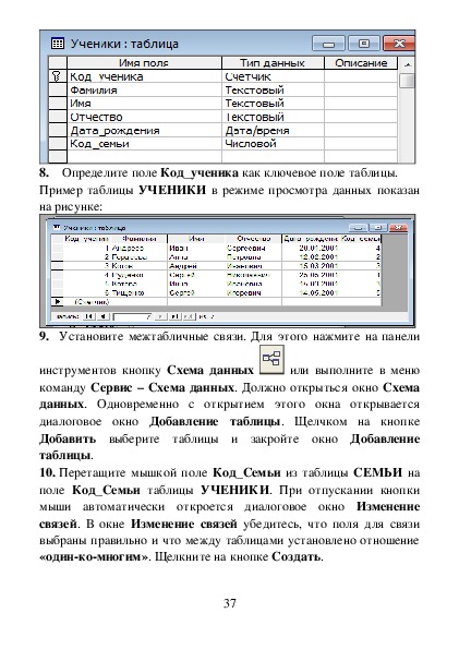 36Определите поле Код_ученика как ключевое поле таблицы.