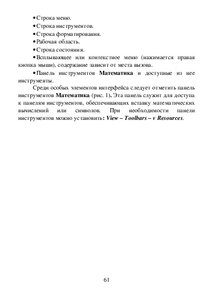 окна с мигающим курсором это «Рабочая область», страница