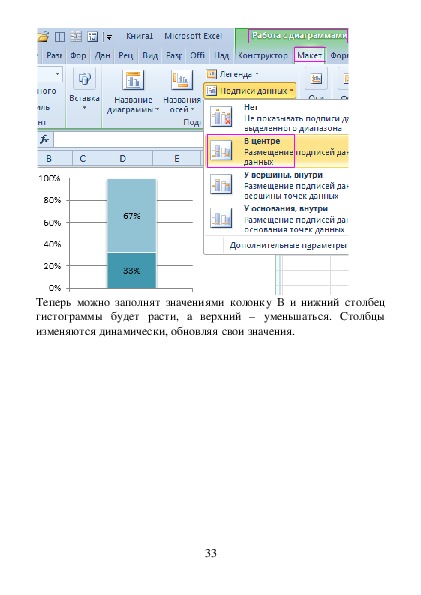 «Работа с диаграммами»«Макет»«Подписи данных»«В