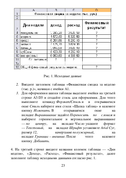 форматирование таблиц.
