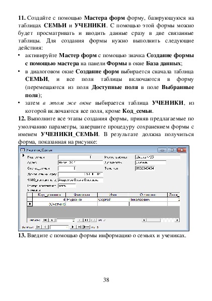 таблицах СЕМЬИ и УЧЕНИКИ. С помощью этой формы можно