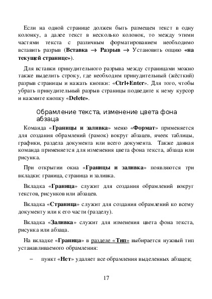 документа, на которой отображается набираемый текст. Границы