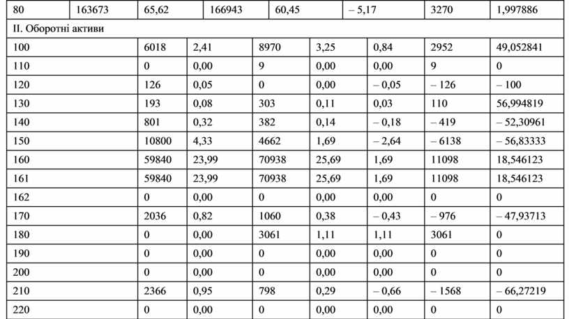 1) валюта балансу даного підприємства зросла майже на 11 % порівняно з початком року, необоротні засоби зросли на 2 %, оборотні кошти на 27 %;