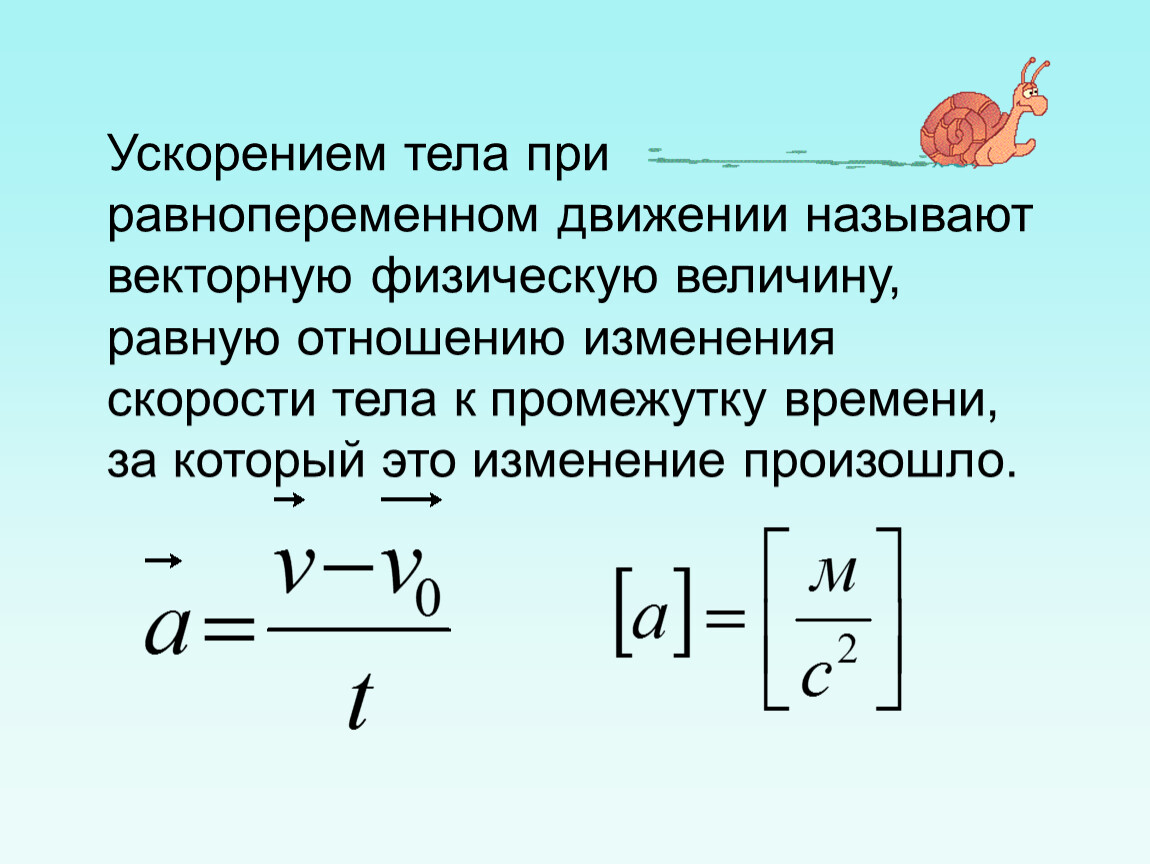 Ускорением тела при равнопеременном движении называют векторную физическую величину,
