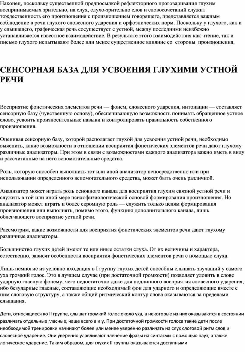 СЕНСОРНАЯ БАЗА ДЛЯ УСВОЕНИЯ ГЛУХИМИ УСТНОЙ РЕЧИ