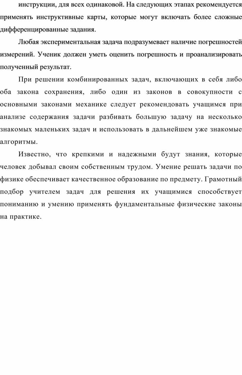 Экспериментальные задачи являются важным звеном в образовательном процессе при обучении физике. Физика - это экспериментальная наука. Педагог, предлагая учащимся экспериментальные задачи, должен тщательно их продумать и дать возможность ученикам быть максимально самостоятельными. Такие виды работ всегда вызывают у учащихся неподдельный интерес, потому что у них возникает возможность познать мир через собственные ощущения. Первые самостоятельные экспериментальные задачи учащиеся должны выполнять по четкой инструкции, для всех одинаковой. На следующих этапах рекомендуется применять инструктивные карты, которые могут включать более сложные дифференцированные задания.
