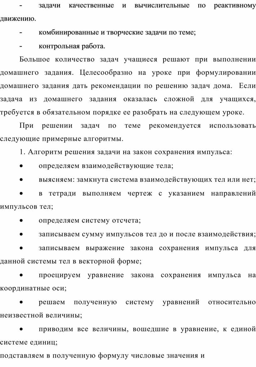 1. Алгоритм решения задачи на закон сохранения импульса: