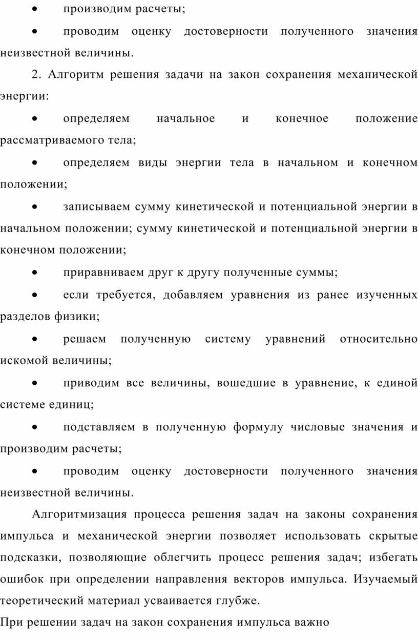 Алгоритмизация процесса решения задач на законы сохранения импульса и механической энергии позволяет использовать скрытые подсказки, позволяющие облегчить процесс решения задач; избегать ошибок при определении направления векторов импульса. Изучаемый теоретический материал усваивается глубже.