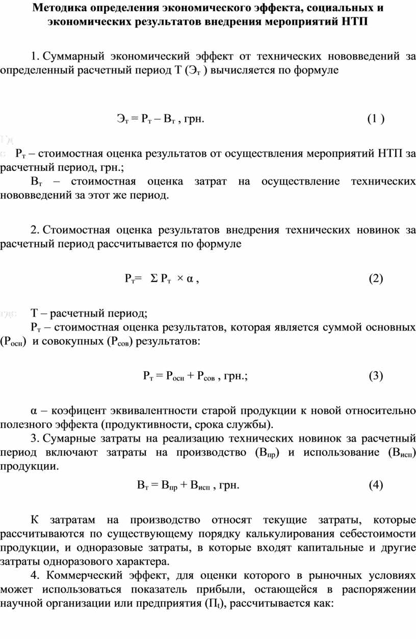 Методика определения экономического эффекта, социальных и экономических результатов внедрения мероприятий НТП