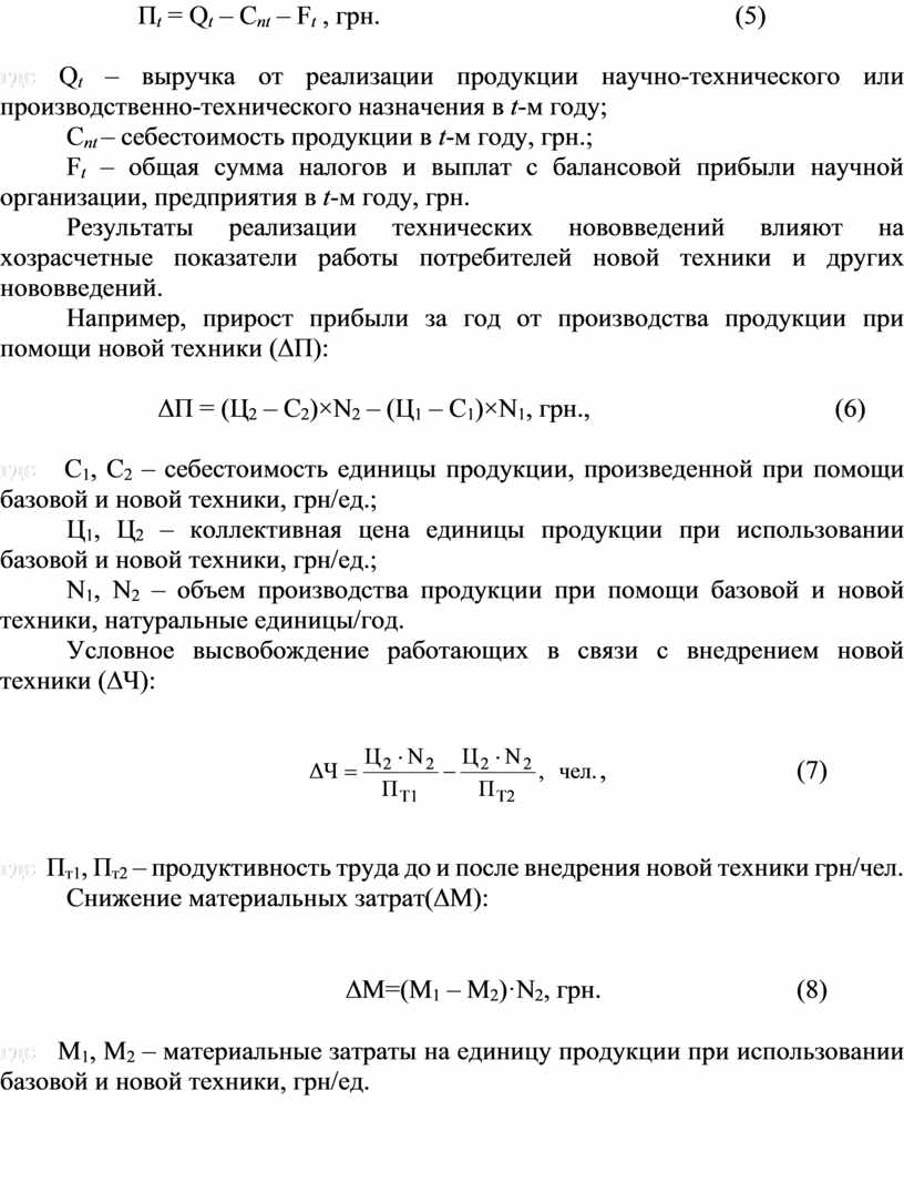 Например, прирост прибыли за год от производства продукции при помощи новой техники (∆П):