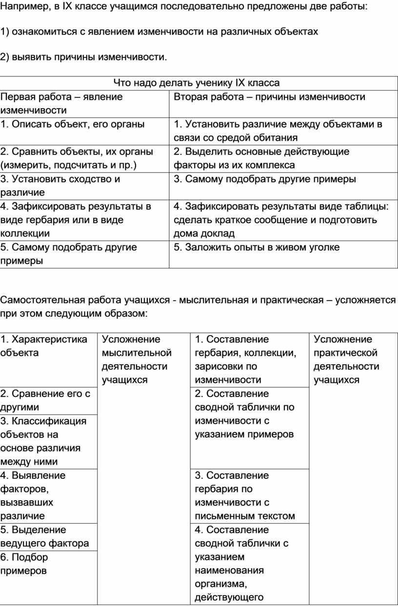 2. Составление сводной таблички по изменчивости с указанием примеров |