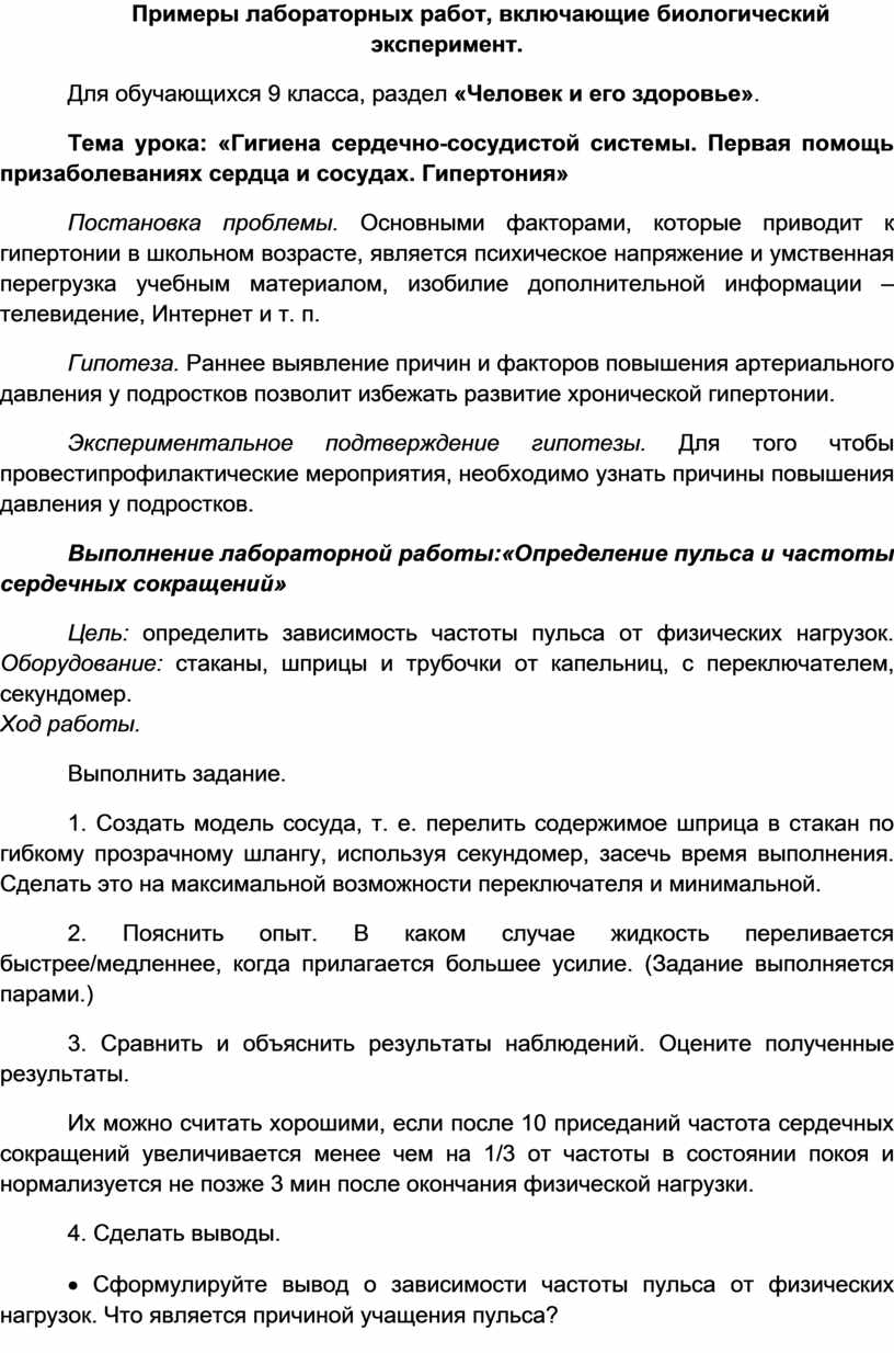 Примеры лабораторных работ, включающие биологический эксперимент.