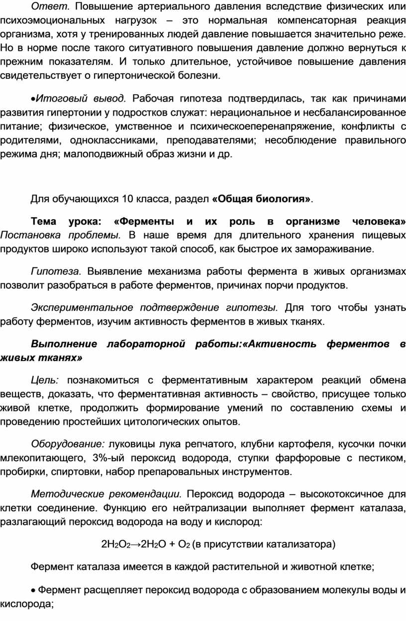 Экспериментальное подтверждение гипотезы. Для того чтобы узнать работу ферментов, изучим активность ферментов в живых тканях.