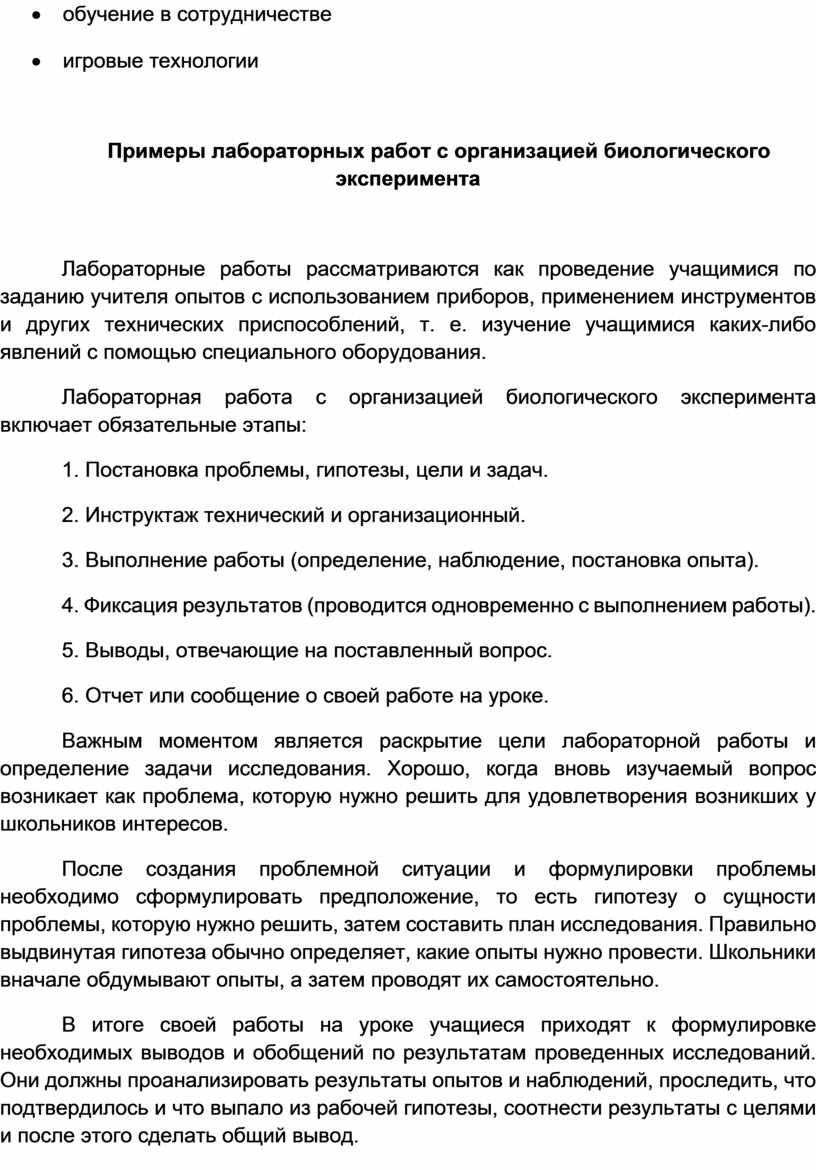Лабораторная работа с организацией биологического эксперимента включает обязательные этапы: