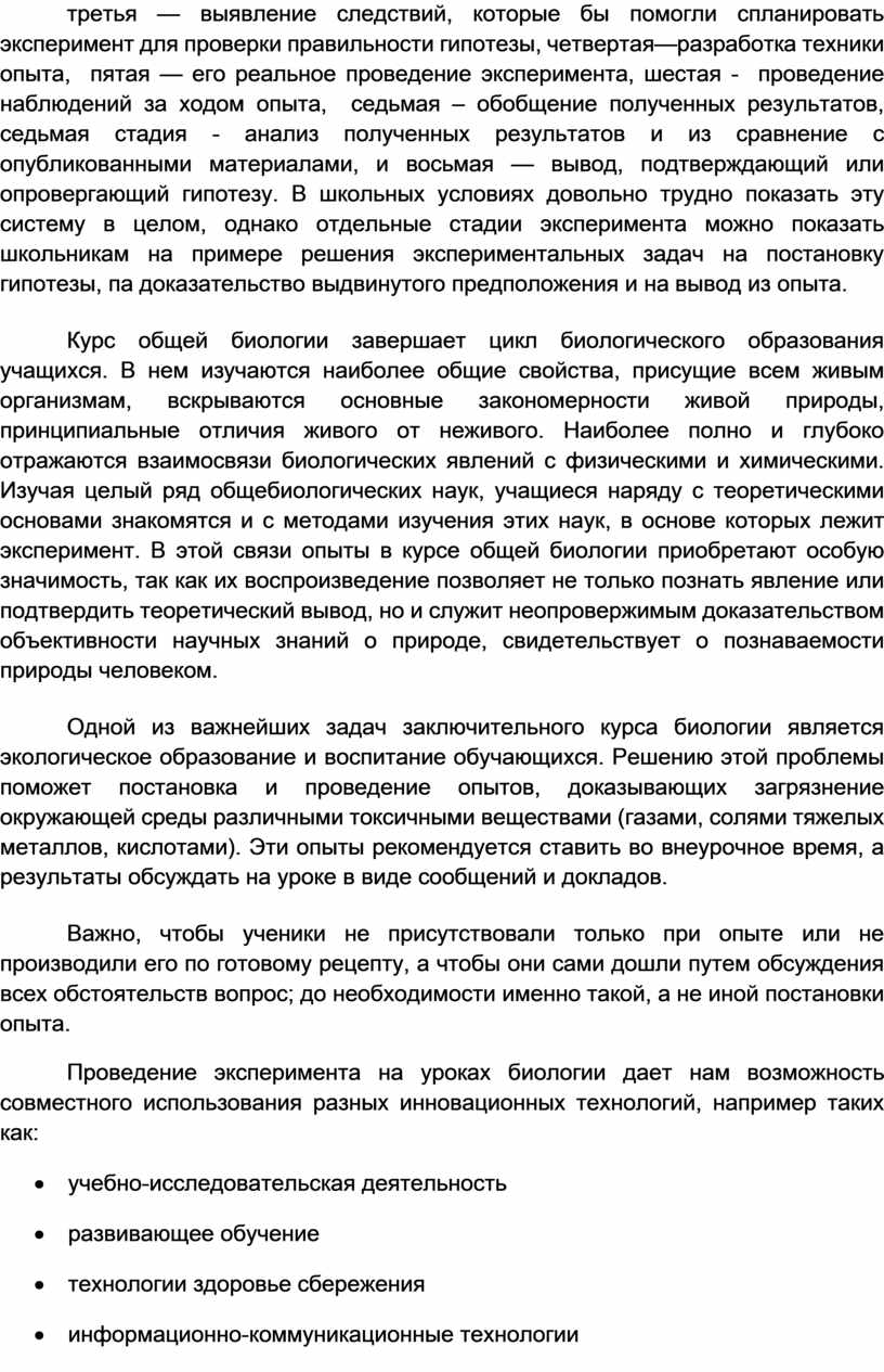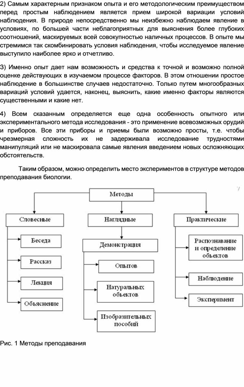Таким образом, можно определить место экспериментов в структуре методов преподавания биологии.