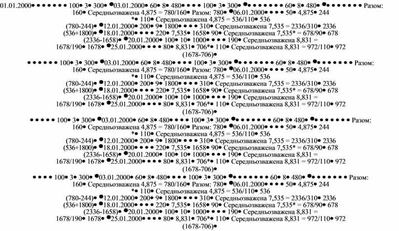 Середньозважена 7,535* = 678/90 |