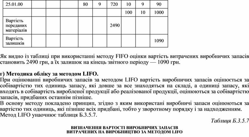 Метод LIFO унаочнює таблиця Б.3.5.7.