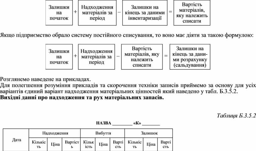 Для полегшення розуміння прикладів та скорочення техніки записів приймемо за основу для усіх варіантів єдиний варіант надходження матеріальних цінностей який наведено у табл. Б.3.5.2.