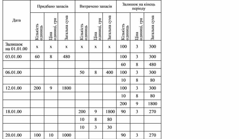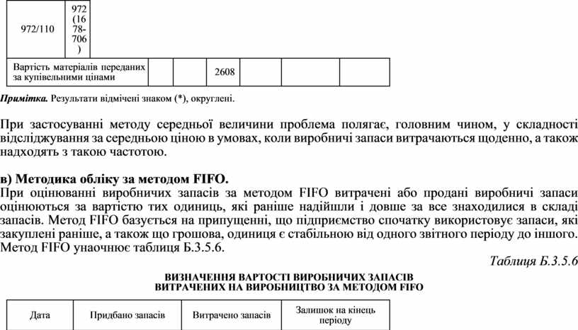 Метод FIFO унаочнює таблиця Б.3.5.6.