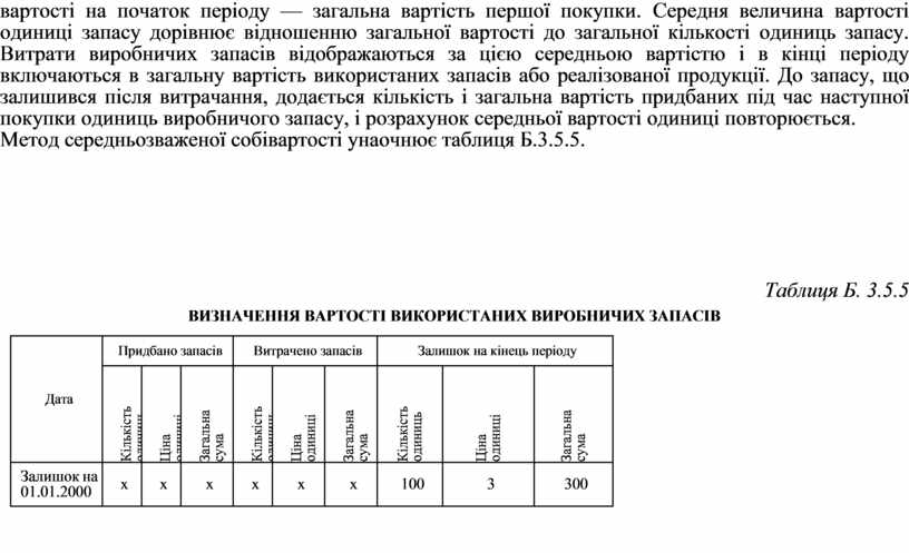 Метод середньозваженої собівартості унаочнює таблиця Б.3.5.5.