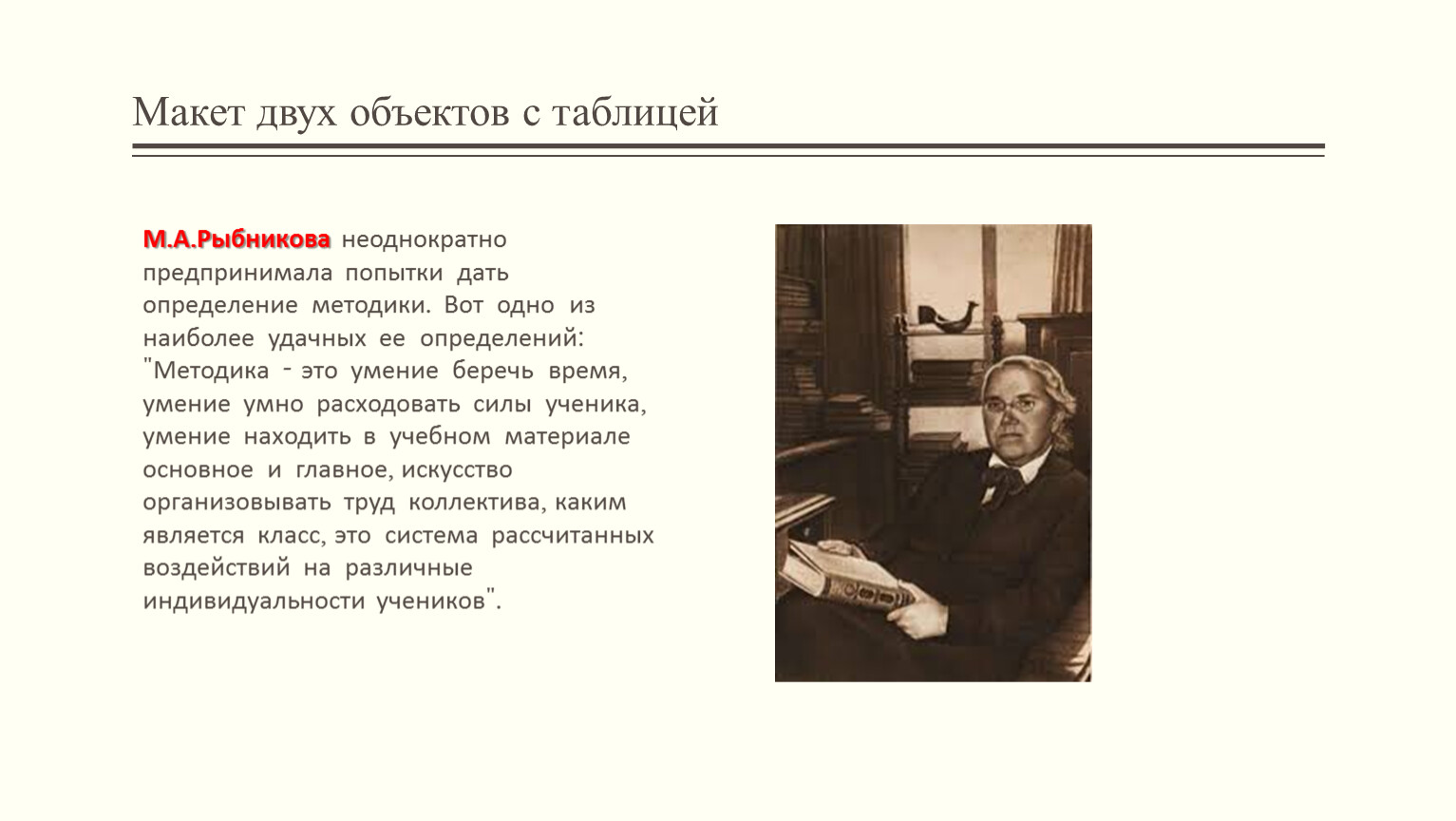 М.А.Рыбникова неоднократно предпринимала попытки дать определение методики. Вот одно из наиболее удачных ее определений:
