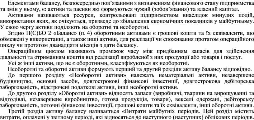 Елементами балансу, безпосередньо пов’язаними з визначенням фінансового стану підприємства та змін у ньому, є: активи та пасиви які формуються чужий (зобов’язання) та власний капітал.