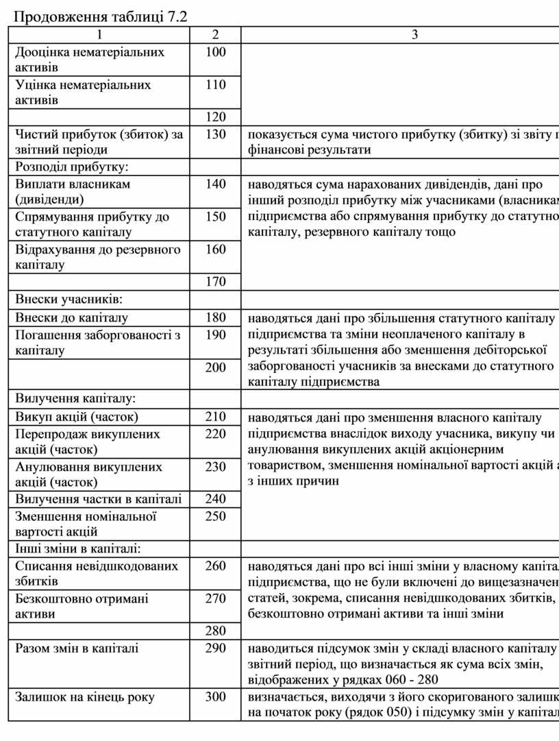 Таблиця 7.2 – Зміст статей Звіту про власний капітал